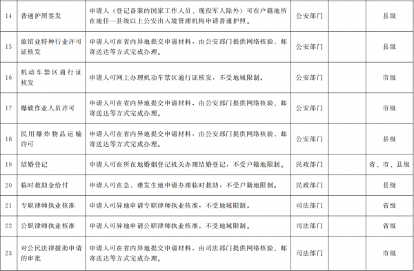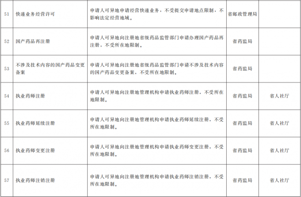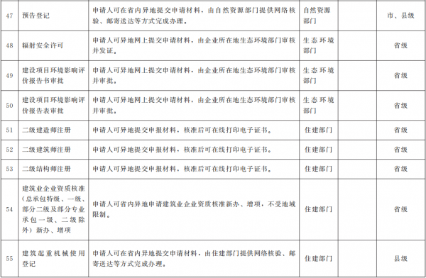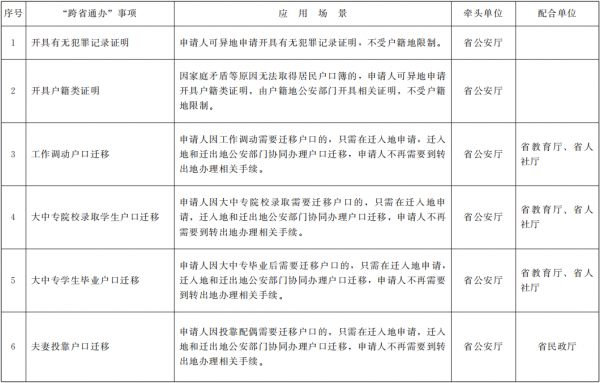 一、2020年底前實現(xiàn)“跨省通辦”的事項(57項)