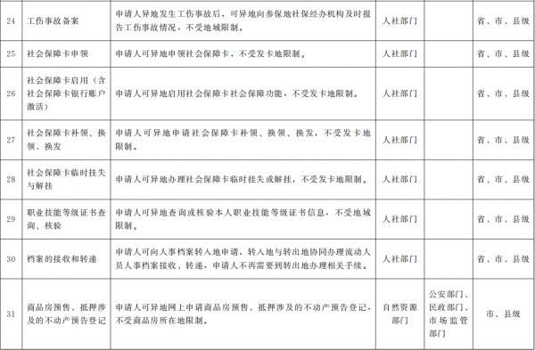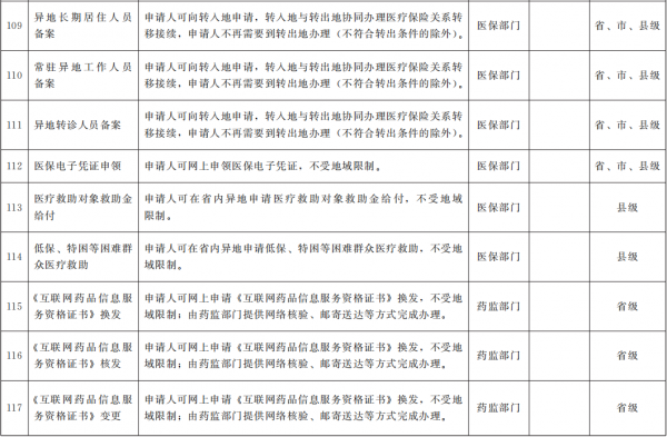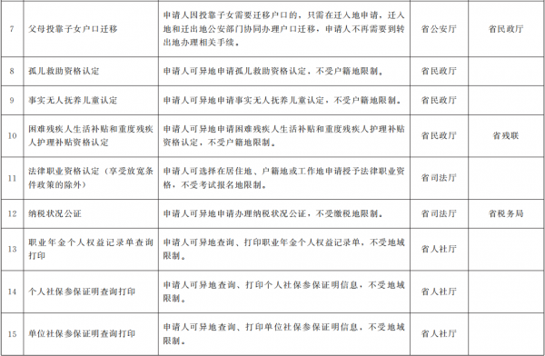 1.大力推動個人高頻政務服務事項異地辦理。圍繞教育、就業(yè)、社保、醫(yī)療、養(yǎng)老、居住、婚育、出行等與群眾生活密切相關的異地辦事需求,推動社會保障卡申領、異地就醫(yī)登記備案及結算、養(yǎng)老保險關系轉移接續(xù)、戶口遷移、住房公積金轉移接續(xù)、就業(yè)創(chuàng)業(yè)、婚姻登記、生育登記等事項實現(xiàn)“跨省通辦”“省內通辦”,便利群眾異地辦事,提升人民群眾獲得感。