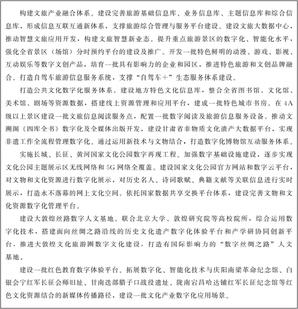 ????充分挖掘甘肅厚重的歷史文化旅游資源,在文化、旅游、民俗、美食、電商等領(lǐng)域與5G、短視頻、音頻、虛擬現(xiàn)實(shí)、在線直播等新技術(shù)業(yè)態(tài)相結(jié)合,引入短視頻服務(wù)類、音頻服務(wù)類、云服務(wù)類、電商類企業(yè),以數(shù)字內(nèi)容生產(chǎn)為抓手,打造“線上引流、線下轉(zhuǎn)型”的發(fā)展新模式,實(shí)現(xiàn)“一業(yè)帶百業(yè)”。