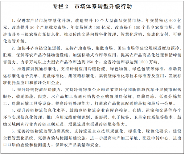 ????聚焦基礎(chǔ)設(shè)施硬件和軟件建設(shè),發(fā)展信息化、集約化、標(biāo)準(zhǔn)化的現(xiàn)代流通網(wǎng)絡(luò),完善農(nóng)產(chǎn)品冷鏈物流體系,提升流通在國民經(jīng)濟中的基礎(chǔ)性支撐和先導(dǎo)性引領(lǐng)作用。