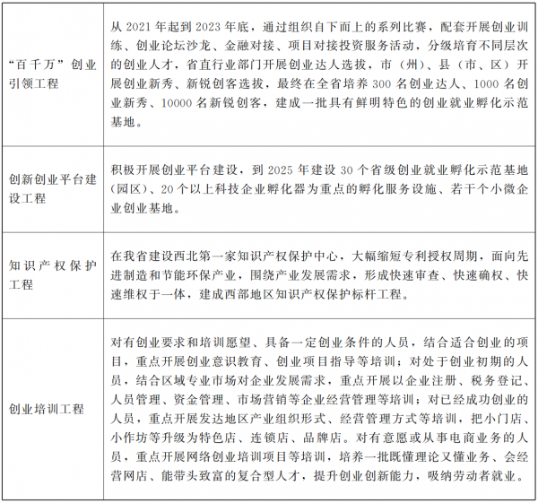 ????優(yōu)化創(chuàng)新創(chuàng)業(yè)環(huán)境。深化“放管服”改革,深入推進(jìn)簡政放權(quán),全面落實《優(yōu)化營商環(huán)境條例》,取消束縛創(chuàng)新創(chuàng)業(yè)活力的行政許可事項,營造尊重創(chuàng)業(yè)、崇尚創(chuàng)業(yè)、支持創(chuàng)業(yè)、競相創(chuàng)業(yè)的和諧創(chuàng)業(yè)環(huán)境,釋放創(chuàng)新創(chuàng)業(yè)活力。優(yōu)化服務(wù),大力發(fā)展“互聯(lián)網(wǎng)+政務(wù)服務(wù)”,落實“省內(nèi)通辦”,便利創(chuàng)新創(chuàng)業(yè),加快建立全省一體化政務(wù)服務(wù)平臺。加大對創(chuàng)業(yè)的政策支持力度,實施創(chuàng)業(yè)帶動就業(yè)示范行動,在用地、融資等方面制定更多支持初創(chuàng)實體的優(yōu)惠政策,拓展創(chuàng)業(yè)企業(yè)直接融資渠道,進(jìn)一步降低創(chuàng)業(yè)成本,提升初創(chuàng)企業(yè)成功率和持續(xù)發(fā)展能力。落實創(chuàng)業(yè)擔(dān)保貸款及貼息政策,擴大擔(dān)?;鹨?guī)模,提高貸款便利度和政策獲得感。完善知識產(chǎn)權(quán)管理服務(wù),加強知識產(chǎn)權(quán)執(zhí)法維權(quán)工作力度。依托高等院校、職業(yè)學(xué)校、職業(yè)培訓(xùn)機構(gòu)、創(chuàng)業(yè)培訓(xùn)(實訓(xùn))中心、創(chuàng)業(yè)孵化基地、眾創(chuàng)空間等實體,針對不同人員和不同創(chuàng)業(yè)階段的特點,開展多層次、差別化的創(chuàng)業(yè)培訓(xùn)。