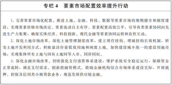 ????健全要素市場化運行機制。拓展完善全省公共資源交易目錄清單,推動各要素進(jìn)入平臺交易。健全科技成果交易平臺,完善技術(shù)成果轉(zhuǎn)化公開交易與監(jiān)管體系。建設(shè)大數(shù)據(jù)交易市場,依法合規(guī)開展數(shù)據(jù)交易,完善要素交易規(guī)則和服務(wù)。建立相關(guān)生產(chǎn)要素的緊急調(diào)撥、采購等制度,鼓勵運用數(shù)字技術(shù),在應(yīng)急管理、疫情防控、資源調(diào)配、社會管理等方面更好發(fā)揮作用。