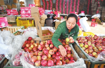 致富不忘鄉(xiāng)親。今年,他倆不僅把自家種植的蘋果通過(guò)網(wǎng)絡(luò)銷售一空,還以每公斤高于市場(chǎng)0.3元左右的價(jià)格收購(gòu)了本村26戶村民3萬(wàn)多公斤蘋果,幫助農(nóng)戶增收。