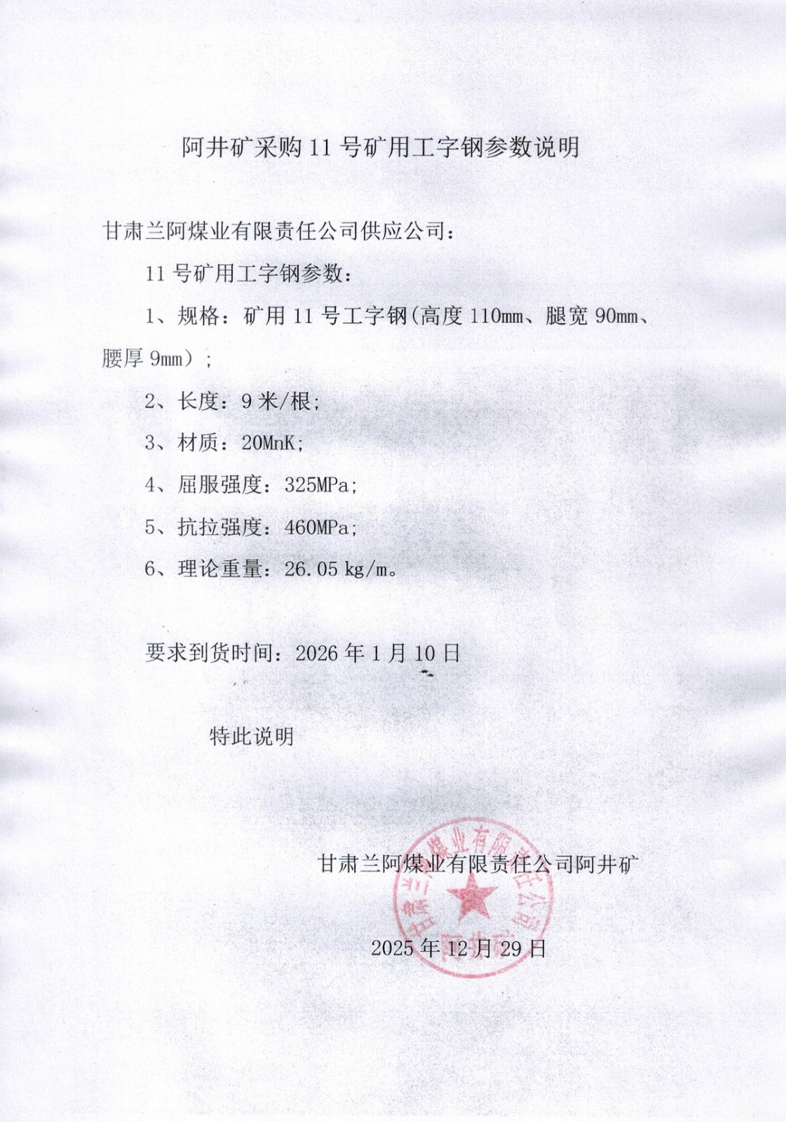 因本次招標為企業(yè)自主招標,意向投標人必須先向招標人提交相關資料進行前期審核,符合要求的投標人,按照要求報名資料蓋有公章、標明稅率、運費的正規(guī)報價單,委托代理人授權書。只需單獨密封報價單,其它資料不密封一起投遞報送,并注明所報名標段及公司名稱。報送截止時間2026年1月3日17:00。