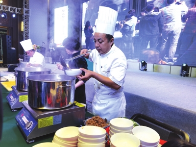 蘭州師傅現(xiàn)場為嘉賓制作牛肉面