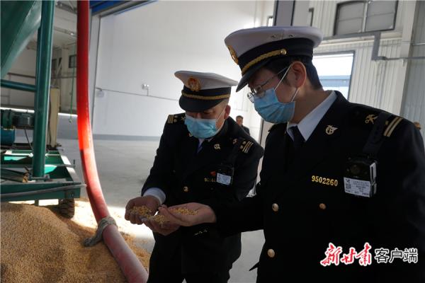 蘭州海關(guān)所屬金城海關(guān)工作人員對進境玉米開展現(xiàn)場監(jiān)管。(蘭州海關(guān)供圖)