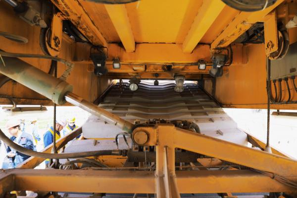 據(jù)介紹,中蘭客專甘肅段鋪軌作業(yè),采用國內研發(fā)的先進鋪軌設備——CPG500型鋪軌機,機械化程度高,可一次性跨區(qū)間鋪設無縫路,連續(xù)作業(yè)時間長,一對500米長鋼軌的鋪設僅需30人操作90分鐘就可以完成,每日單班可鋪設2公里。同時,中蘭客專甘肅段鋪軌作業(yè)采用國內先進的“鐵路工程線運輸調度系統(tǒng)”,實現(xiàn)了工程運輸調度信息化、列車運行監(jiān)控實時化、作業(yè)工點安全防護信息化、統(tǒng)計分析自動化等目標,大大降低了鋪架施工風險,確保鐵路工程線施工安全。