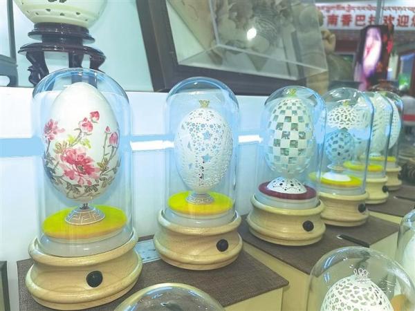 “別看這小小的蛋殼,從各類蛋色蛋形的挑選,到著手繪畫與雕刻,制作起來很是復(fù)雜,每一步都要小心謹慎……”國際會展中心二樓6號展廳臨夏館,“河州蛋雕第一人”楊星國正在向客商介紹蛋雕這門“脆弱的藝術(shù)”。