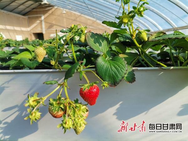 蘭州新區(qū)采用綠色生產(chǎn)模式生產(chǎn)的草莓。新甘肅·甘肅日?qǐng)?bào)記者?王朝霞?攝