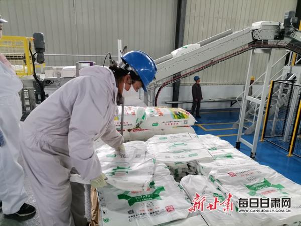 藍(lán)天集團(tuán)生產(chǎn)車(chē)間對(duì)馬鈴薯進(jìn)行深加工。新甘肅·甘肅日?qǐng)?bào)記者?王朝霞?攝