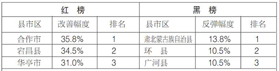 2.紅榜為改善幅度排名前3位的縣市區(qū),黑榜為反彈幅度排名前3位的縣市區(qū)。