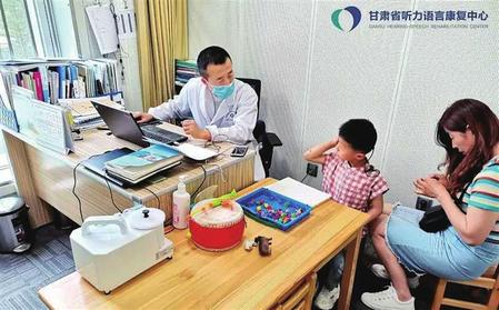 專(zhuān)家正在為殘疾兒童進(jìn)行聽(tīng)力語(yǔ)言康復(fù)訓(xùn)練。
