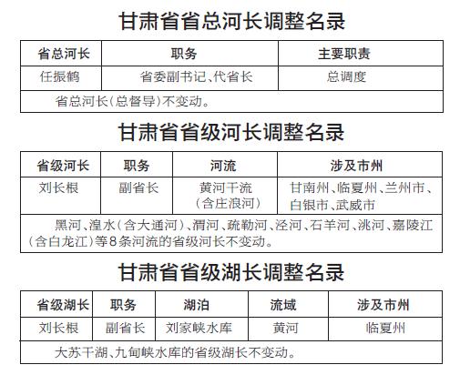 為確保我省河長制湖長制工作持續(xù)有力有序推進,根據(jù)近期省政府領(lǐng)導成員及工作分工變動情況,現(xiàn)將省總河長及省級河湖長調(diào)整名錄公示如下: