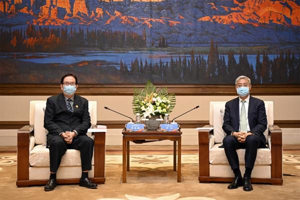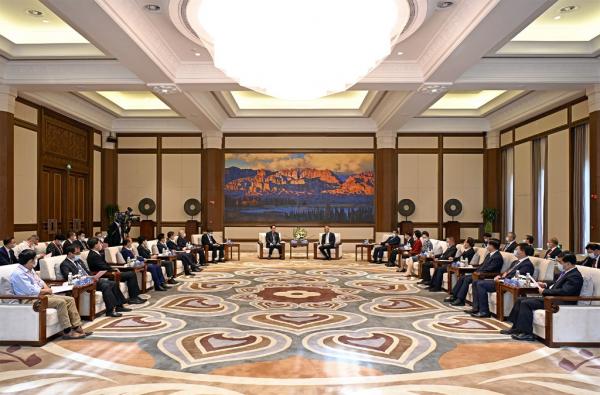 ????石謀軍、何偉、陳青、王銳及李志勛一同會見。(記者張富貴 金鑫?孟捷)