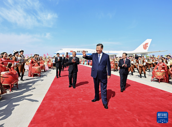 新疆維吾爾自治區(qū)黨委書(shū)記陳小江、自治區(qū)人民政府主席艾爾肯·吐尼亞孜、自治區(qū)人大常委會(huì)主任祖木熱提·吾布力、自治區(qū)政協(xié)主席努爾蘭·阿不都滿金、新疆生產(chǎn)建設(shè)兵團(tuán)政委何忠友等在舷梯下迎候。習(xí)近平走下舷梯時(shí),少先隊(duì)員獻(xiàn)上鮮花。各族群眾代表身著民族服飾,載歌載舞,歡迎總書(shū)記的到來(lái),表達(dá)對(duì)總書(shū)記的衷心祝福。