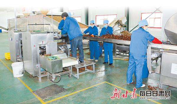 景泰縣興和中藥飲片公司的工人正忙著加工甘草。?新甘肅·甘肅日?qǐng)?bào)記者?陳?泳