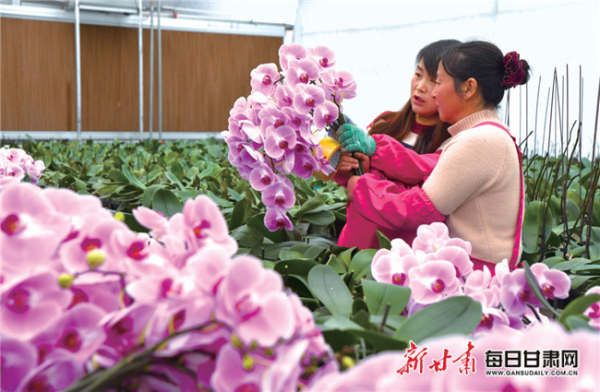 在渭源縣五竹鎮(zhèn)的扶貧車間內(nèi),工人們正在捆扎鮮切蝴蝶蘭,一派繁忙景象。一座座小小的扶貧車間,讓當(dāng)?shù)厝藢?shí)現(xiàn)就近就業(yè),在掙錢的同時(shí)也能很好地照顧家庭。