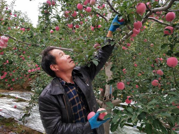通渭縣新景鄉(xiāng)王灣村果農(nóng)正在采摘豐收的“致富果”。新甘肅·甘肅日報通訊員 許文逸攝