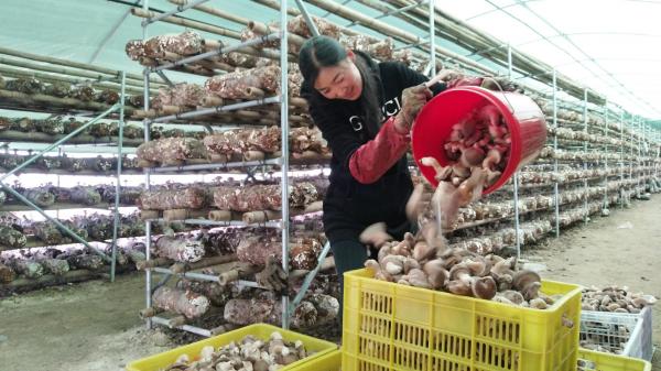 宕昌縣韓院鄉(xiāng)大莊村農(nóng)民在食用菌種植基地分裝采收香菇。新甘肅·甘肅日報通訊員 劉國慶