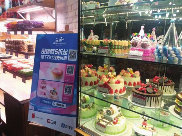 蘭州一家蛋糕店擺出“雙11”活動(dòng)海報(bào)。