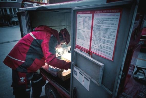 快遞小哥加班工作