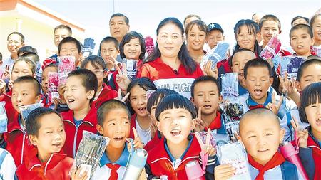 天津支教老師楊靜和靖遠鄉(xiāng)村的孩子們在一起。