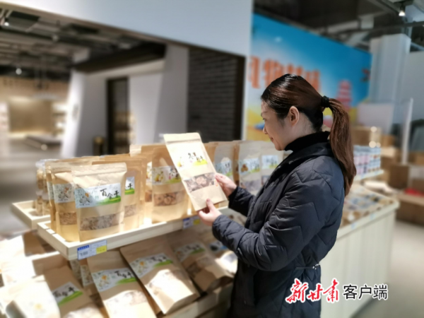 甘肅省在重慶市的中國西部消費扶貧中心設立甘肅館,游客在觀看甘肅特色農(nóng)產(chǎn)品。