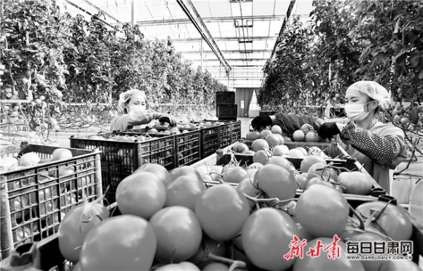 2月中旬以來,張掖海升現(xiàn)代農(nóng)業(yè)智能溫室工業(yè)化蔬菜栽培車間里,“串收番茄”“迷你彩椒”等產(chǎn)品進入收獲旺季,剛從果蔬采摘區(qū)采摘下來的新鮮果蔬從這里運往北京、上海、深圳、廣州。
