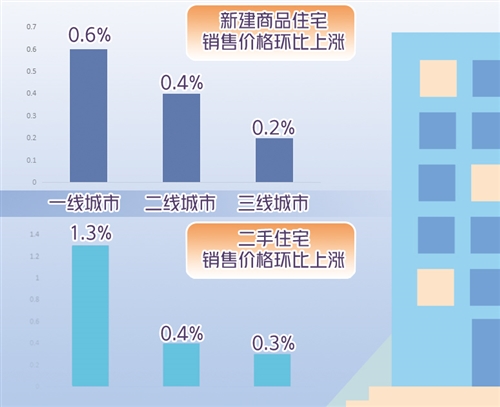 繩國慶介紹,據(jù)測算,1月份,4個一線城市新建商品住宅銷售價格環(huán)比上漲0.6%,漲幅比上月擴(kuò)大0.3個百分點(diǎn)。其中,北京、上海、廣州和深圳分別上漲0.5%、0.6%、1.0%和0.3%。二手住宅銷售價格環(huán)比上漲1.3%,漲幅比上月擴(kuò)大0.7個百分點(diǎn)。其中,北京、上海、廣州和深圳分別上漲0.9%、1.3%、1.4%和1.7%。31個二線城市新建商品住宅和二手住宅銷售價格環(huán)比均上漲0.4%,漲幅比上月均擴(kuò)大0.3個百分點(diǎn)。35個三線城市新建商品住宅和二手住宅銷售價格環(huán)比分別上漲0.2%和0.3%,漲幅比上月均擴(kuò)大0.1個百分點(diǎn)。