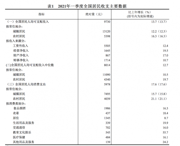 國(guó)家統(tǒng)計(jì)局日前發(fā)布2021年一季度居民收入和消費(fèi)支出情況,一起來(lái)看看這份賬單,你的錢(qián)花在哪了?