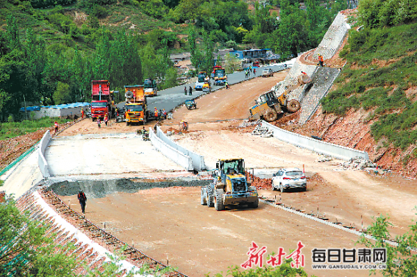 5月23日,由中鐵二十局市政公司等單位施工的甘肅省重點(diǎn)工程隴漳高速公路漳縣境內(nèi)的路面開始攤鋪。該公路從隴西縣文峰鎮(zhèn)到漳縣武陽鎮(zhèn),計(jì)劃年內(nèi)建成通車。新甘肅·甘肅日?qǐng)?bào)通訊員 許崗