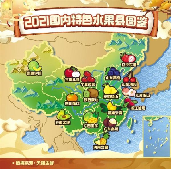 甘肅禮縣成了新晉“蘋果縣”,山東海陽成了名副其實的“櫻桃縣”,廣東茂名的桂味荔枝占據(jù)了“荔枝鄙視鏈”頂端,四川蒲江美美地成了“丑柑縣”……6月8日,天貓發(fā)布2021水果縣圖鑒,國內(nèi)16個區(qū)、縣躋身2021特色水果縣,“吃貨硬是吃出了16個新地名”。