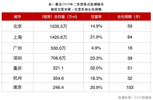 除了租金與出租率之外,辦公租賃空置存量情況也是衡量各大城市辦公室很重要的指標(biāo)。