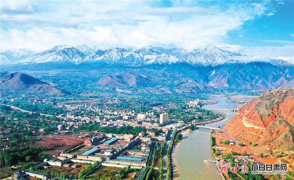 初夏的積石山縣大河家鎮(zhèn)遠處的雪山和黃河相互映襯,形成一道獨特的風景。新甘肅·甘肅日報通訊員?丁生智