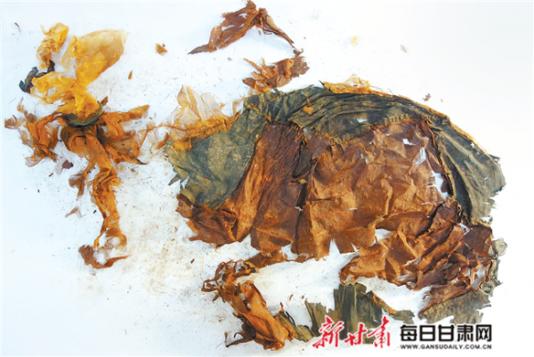王菊回憶道:“初見這件文物時,其形貌可謂是一團糟。構(gòu)成它的幾種織物都很糟朽、酥脆,硬化成樹皮狀,碳化也十分嚴重,多處殘缺,關(guān)鍵是形制很模糊,一時無從下手……”這不僅困擾著王菊,也讓指導此次修復工作的老師犯了難。
