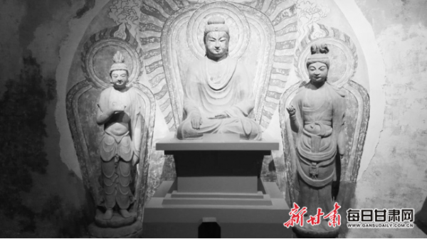 3號(hào)窟一佛二脅侍(甘博供圖)