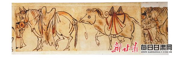 駱駝在絲綢之路上是沙漠戈壁中負(fù)載馱運重要的交通工具,被稱為“沙漠之舟”,故其藝術(shù)形象出現(xiàn)在藏經(jīng)洞繪畫或敦煌壁畫中,儼然成為古代中西經(jīng)濟(jì)、文化交流的象征符號。