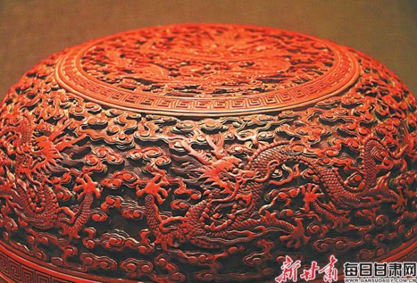 雕漆云龍戲珠圓盒(局部) 河南博物院藏