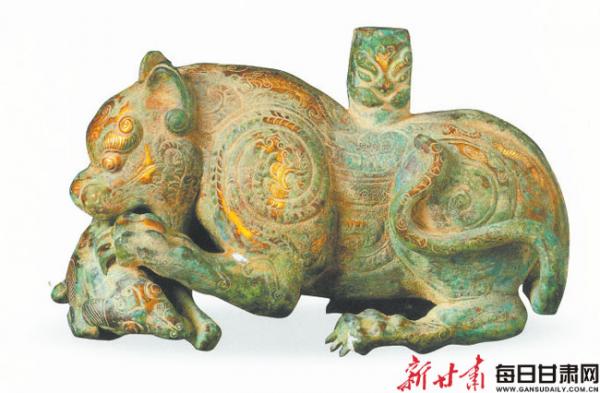 青銅鎏金虎噬羊形器座 甘肅省博物館藏