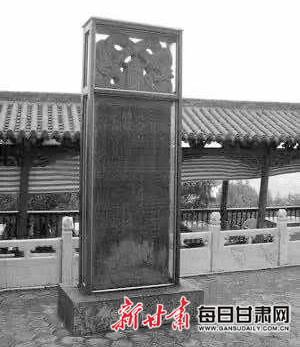 據(jù)記載,最早的岣嶁碑立在湖南衡山的岣嶁峰上。宋寧宗嘉定五年(公元1212年),何賢良游南岳,在岣嶁峰摹得碑文,過長(zhǎng)沙時(shí)請(qǐng)人翻刻于岳麓山巔。現(xiàn)在全國(guó)各地有10余處禹碑,都是由岳麓山禹碑復(fù)刻的。蘭州的這通碑是咸豐十一年(1861)年,酒泉侯建功摹刻的。