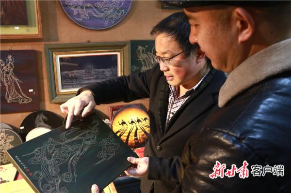 申洪杰(左)介紹作品《莫高窟雙飛天》