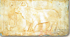 漢·雕刻牛畫磚 慶陽市博物館藏