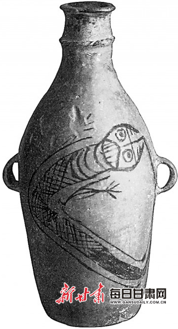 雙耳鯢魚紋彩陶瓶