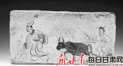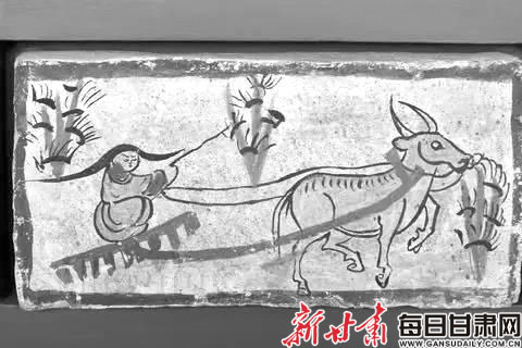 魏晉高臺壁畫磚《耙地圖》