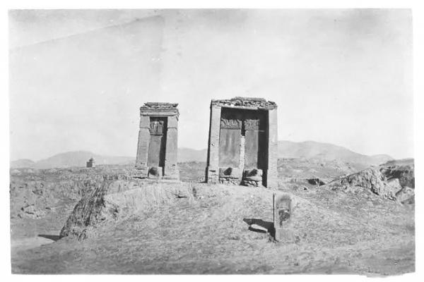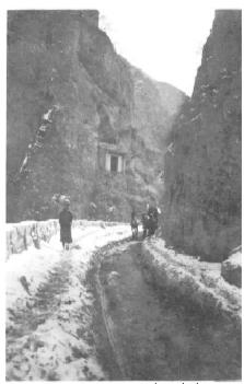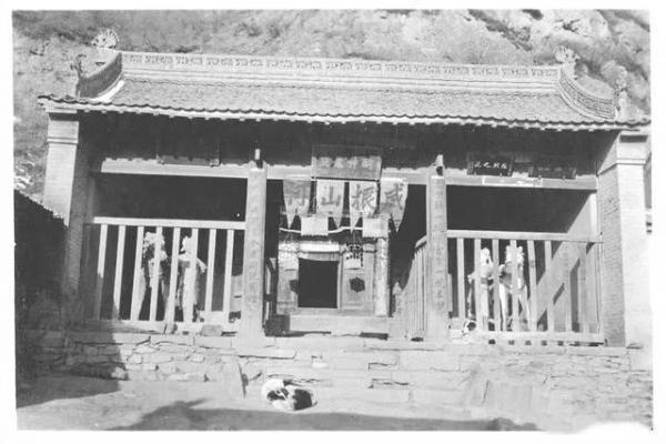 這組照片顯示,這位美國(guó)傳教士乘坐馬車到甘肅游歷,他的車隊(duì)正在翻越六盤(pán)山。六盤(pán)山海拔2928米,山高路險(xiǎn),空氣稀薄,氣溫低,是從涇川西行翻越的第一座高山,因而給旅行者們留下了非常深刻的印象。六盤(pán)山半山腰,有座關(guān)帝廟,門(mén)前懸掛匾額“威震山河”。