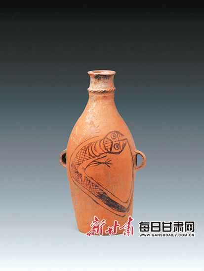 胡人有胡人的器皿,我們中華也有中華的器物,由先秦經(jīng)漢晉,與胡瓶相似的中華器皿大約是瓶與罐,這種瓶與罐的器形在新石器時(shí)代晚期的彩陶中早就有了。譬如,甘肅省博物館收藏的仰韶文化晚期的“鯢魚(yú)紋彩陶瓶”、辛店文化時(shí)期的“鳥(niǎo)紋渦紋彩陶罐”等等,都是比較固定的器形。大家看看,中國(guó)的瓶與罐器身上只有單耳或雙耳,沒(méi)有持重用的把手,這樣單手拿起來(lái)就不如胡瓶方便了。而且,中國(guó)的瓶與罐的口沿基本是直的,沒(méi)有流,斟酒倒水的時(shí)候很容易灑落。