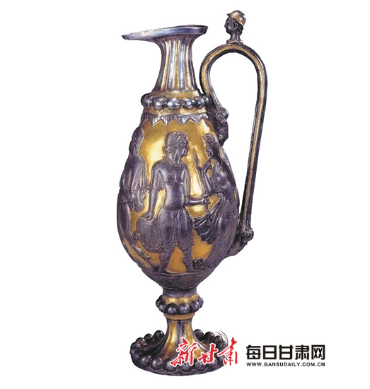 這個(gè)被模仿的西方器皿,叫胡瓶。胡瓶是什么樣子呢?不知小伙伴們有沒(méi)有看過(guò)《一千零一夜》的故事畫(huà)冊(cè),這類(lèi)講述古代西亞故事的畫(huà)冊(cè)中,常見(jiàn)到一種大口、鴨嘴、細(xì)長(zhǎng)頸、橢圓形腹,腹側(cè)有著長(zhǎng)長(zhǎng)手柄的金銀器皿,這種有著鮮明異域特色的壺狀金銀器就是胡瓶。胡瓶多用作酒器,相當(dāng)于酒壺,當(dāng)然用來(lái)盛水也沒(méi)問(wèn)題。胡瓶既然是金銀器,在《阿里巴巴與四十大盜》等故事中差不多就是財(cái)富的體現(xiàn)。自然,胡瓶不只出現(xiàn)在阿拉伯的故事中,它最早出現(xiàn)在古希臘或古羅馬時(shí)代,后來(lái)才向東流傳到中亞、西亞,成為貴族和富人們?nèi)粘Q顼嬘镁?。差不多在魏晉南北朝時(shí)期傳入中國(guó),中國(guó)人給它一個(gè)名字——胡瓶。