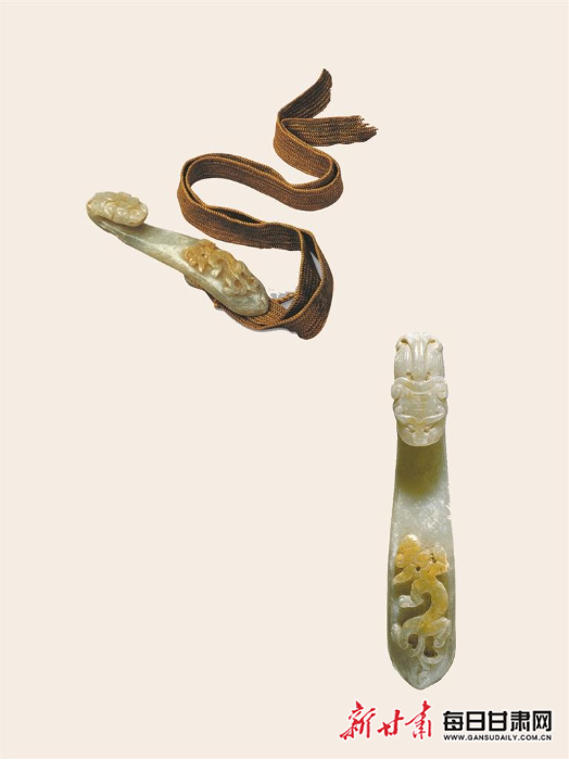 在甘肅省博物館眾多的藏品中,有三件精美的玉制品,它們分別是:東漢時的龍首玉帶鉤、元時的獸首螭(chī)紋玉帶鉤、明朝的雉雞牡丹紋鏤空玉帶板。三件文物的年代雖相隔甚遠,但有個共同的名字——玉帶。什么是玉帶呢?傳統(tǒng)戲曲京劇、秦腔等小伙伴們有看過吧,戲文中的帝王將相出臺時都儼然齊整地穿戴著“蟒袍玉帶”。玉帶,便是帝王將相腰間所系的鑲嵌著美玉的腰帶,但玉帶卻不僅僅是腰帶,在古代社會,它從來都是身份、地位及財富的象征,是昭明身份、分辨等級的醒目符號——
