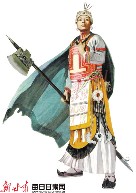 “商王后婦好持鉞想象圖”及婦好鉞?(資料圖)