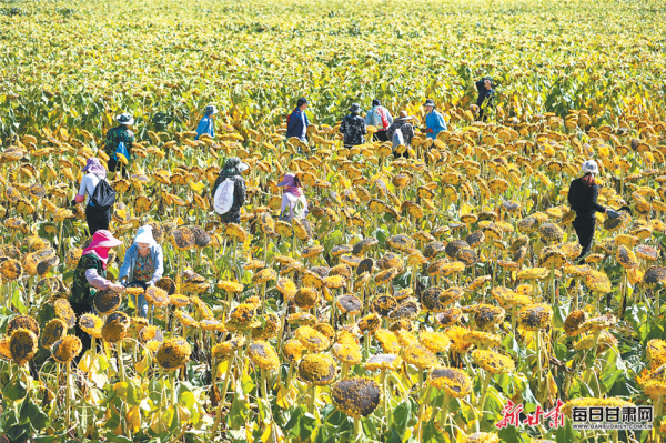 向日葵開鐮采收,金燦燦的田野里果實(shí)累累。